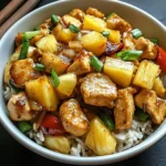 Pineapple Chicken Stir-Fry is a delightful and vibrant dish that combines tender chicken, juicy pineapple chunks, and colorful vegetables. The sweet and savory flavors meld together in a way that warms the heart and pleases the palate. This dish is not only quick to prepare, making it ideal for busy weeknights, but it also offers a healthy option packed with protein and fresh produce. The addition of jasmine rice creates a filling base, while the ginger and garlic provide aromatic depth to every bite. Whether you’re cooking for family or friends, Pineapple Chicken Stir-Fry is sure to impress!